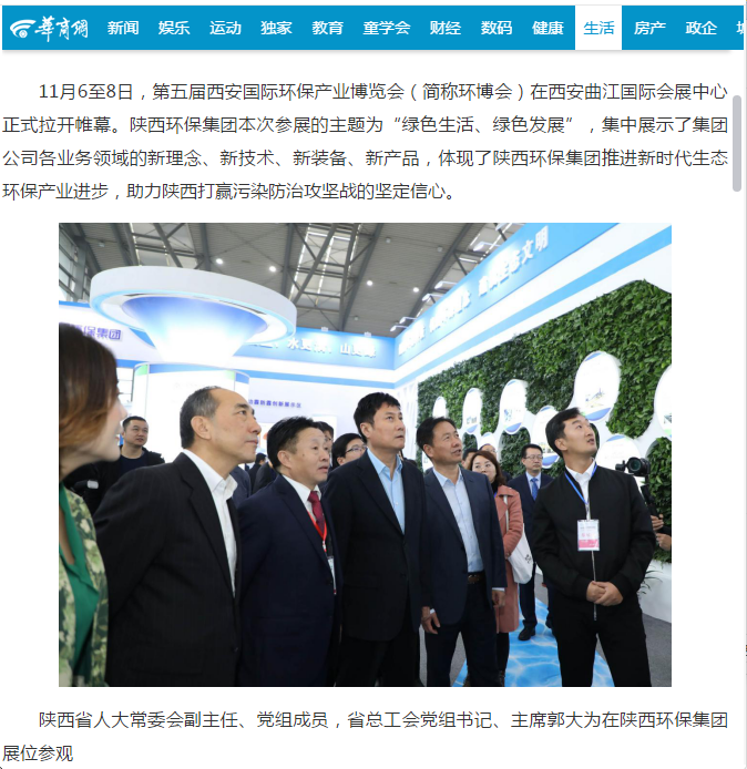 五、华商网报道bsports集团党委书记、董事长熊良虎陪同省人大常委会副主任、省总工会主席郭大为一行参观bsports集团“深入推进四大保卫战,勇做陕西污染防治排头兵”主题展区。