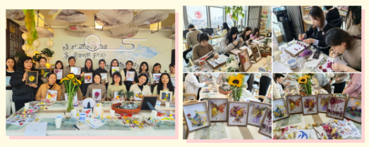 干花手作体验活动中,在专业老师指导下,女职工们利用干花材料精心创作相框艺术作品,将自然之美与创意设计相融合。现场互动热烈,大家在协作中交流技艺,既释放了工作压力,又增强了团队凝聚力。作品完成后,女职工们纷纷表示,通过手工创作感受到了传统文化魅力,也提升了艺术审美能力。