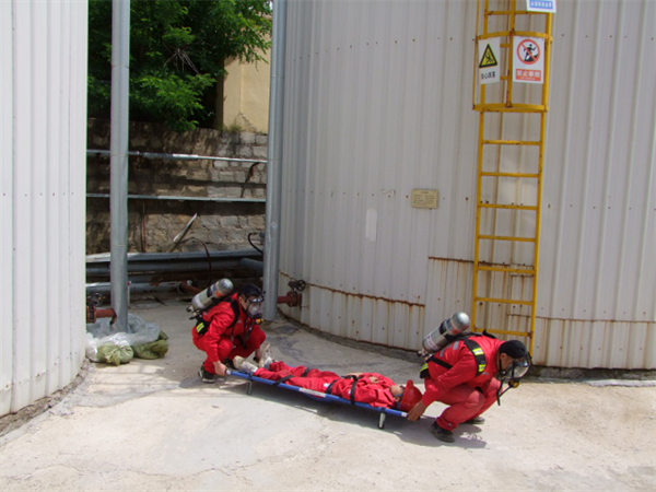应急救援分队以罐区突发危险物泄露为情景假设,展开了一场凸显熟练使用正压式空气呼吸器、灭火器材、危险环境气体检测器材、医疗救护器材规范使用的演练。整场演练活动从接警响应、警戒隔离、气体环境检测、自救互救、抢险恢复各个程序有条不紊一气呵成,达到“快速响应、处置果断、技术娴熟、保障有力”的总体要求,一次性通过验收。